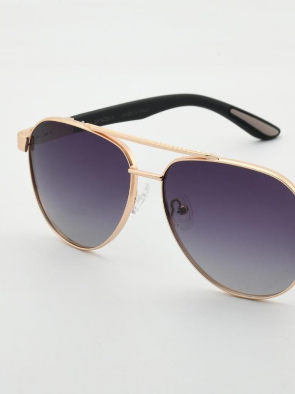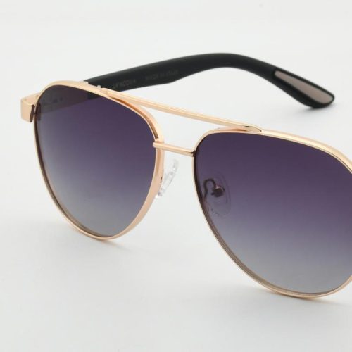 Elegant and effortlessly cool. This Italian-made aviator pairs a slim matte-gold metal frame with gradient grey 1.1 mm polarized lenses for crisp, glare-free vision. Black temple tips keep the fit soft and secure, while the silhouette flatters most face shapes.