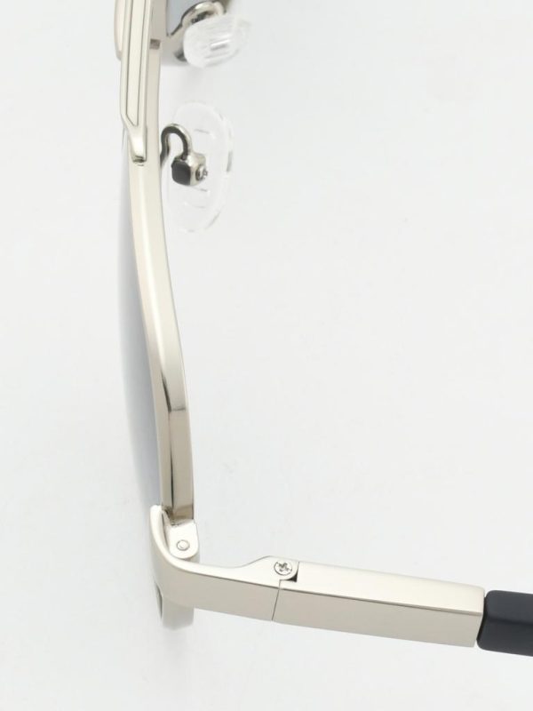 Frame: Lightweight satin-silver metal with clean double-bridge