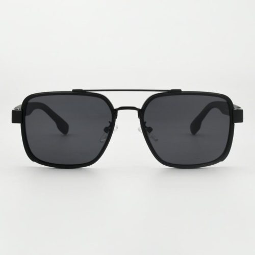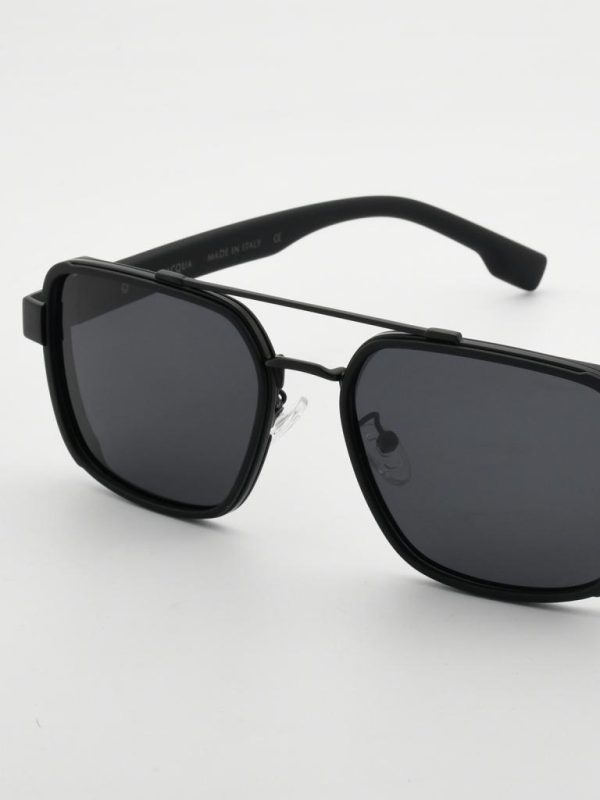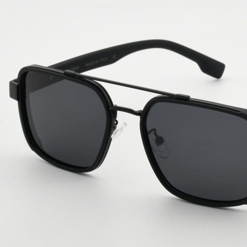 A modern navigator with industrial edge: a sculpted matte-black metal frame, clean double-bridge, and 1.1 mm grey polarized nylon lenses for crisp, glare-free vision. Italian craftsmanship and everyday durability in a confidently masculine silhouette.