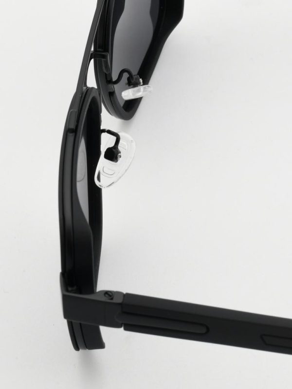 Frame: Lightweight matte-black metal with squared navigator shape and sleek cut-out temple detailing