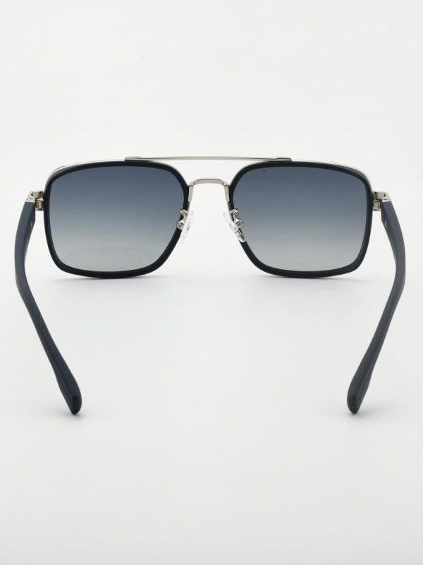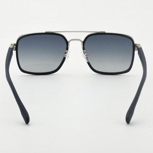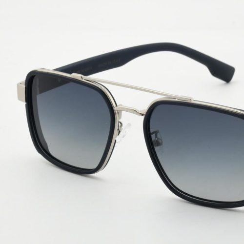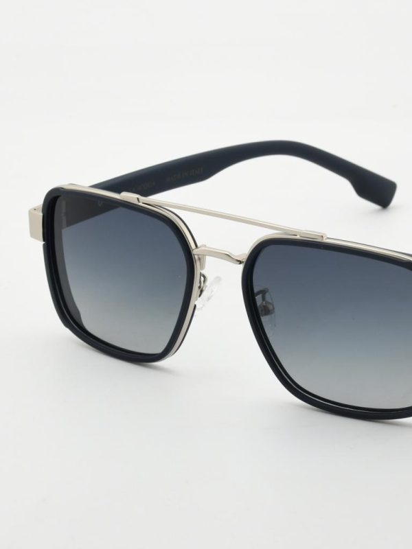 A crisp, architectural navigator in polished silver with black accents and a clean double-bridge. Finished with 1.1 mm gradient grey polarized nylon lenses for sharp, glare-free vision. Italian craftsmanship meets modern sport-luxe style.
