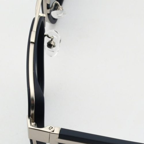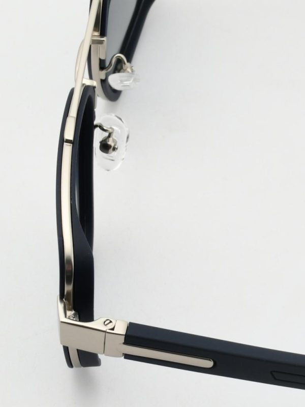 Frame: Lightweight polished-silver metal; squared navigator shape with cut-out temple detailing