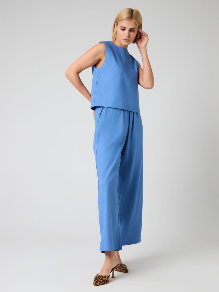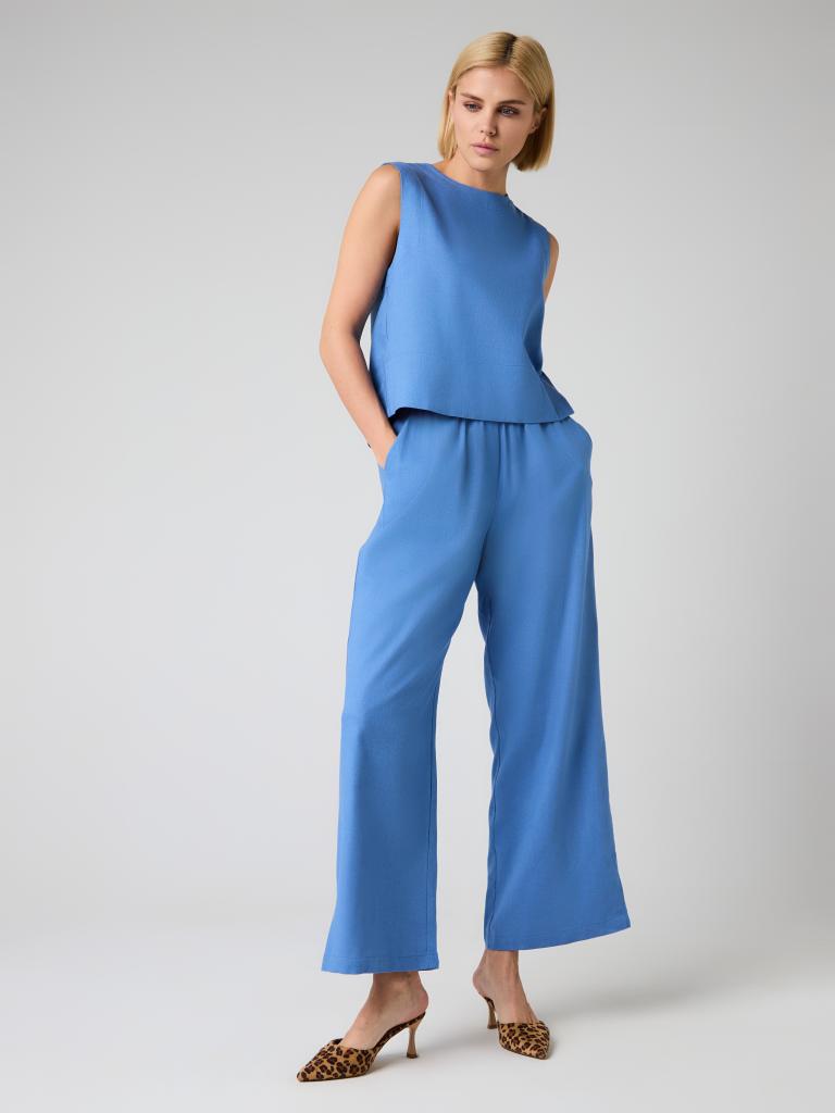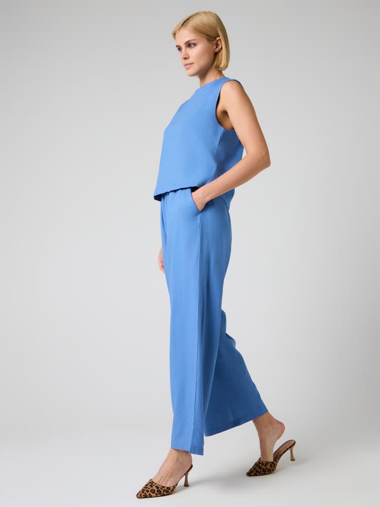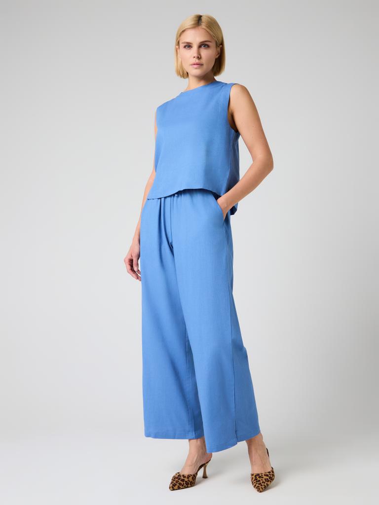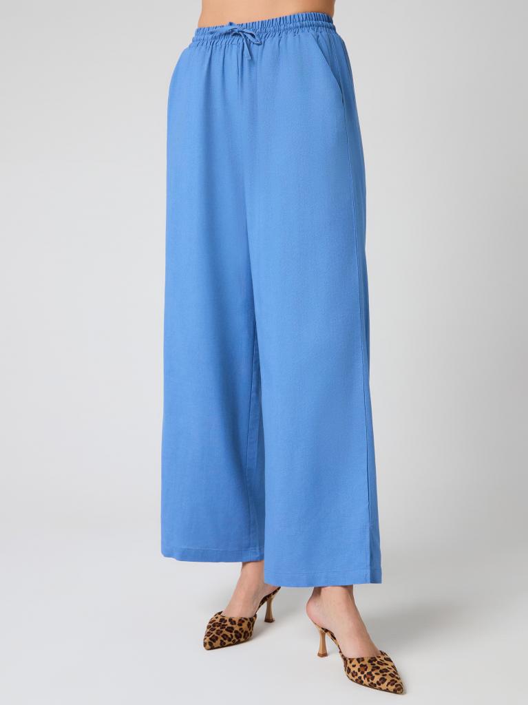 Stay cool and stylish in these relaxed linen-blend pants, designed with a wide-leg silhouette for effortless movement. Featuring an elasticated waistband with a drawstring for customizable comfort, they’re perfect for both lounging and casual outings. Inseam length: 75 cm. Made in Mexico.
