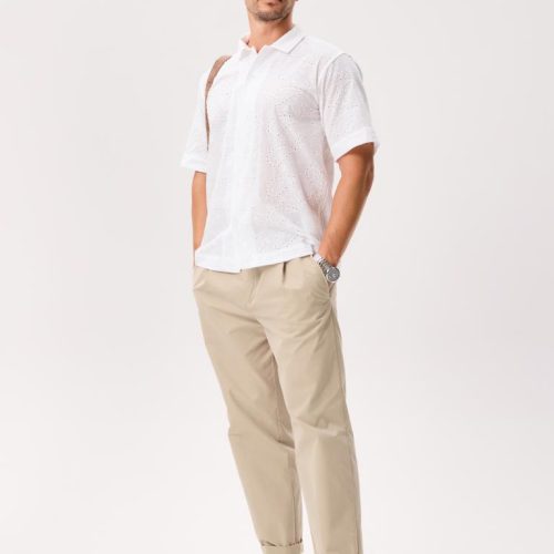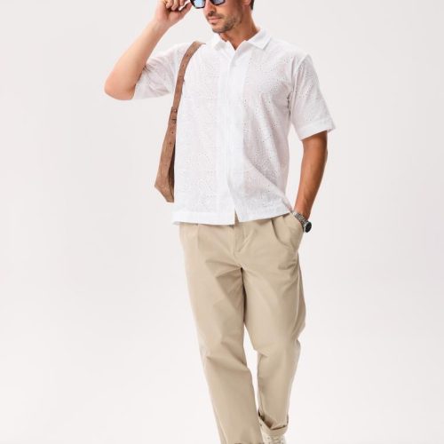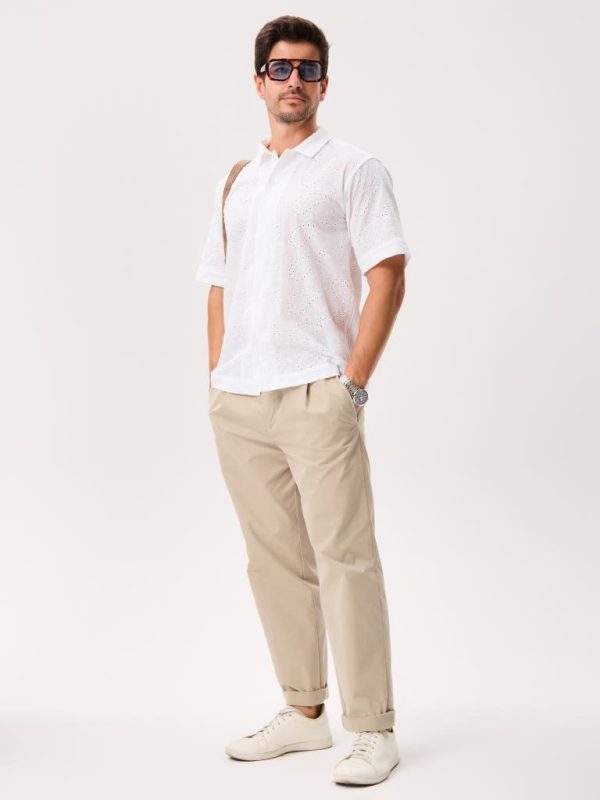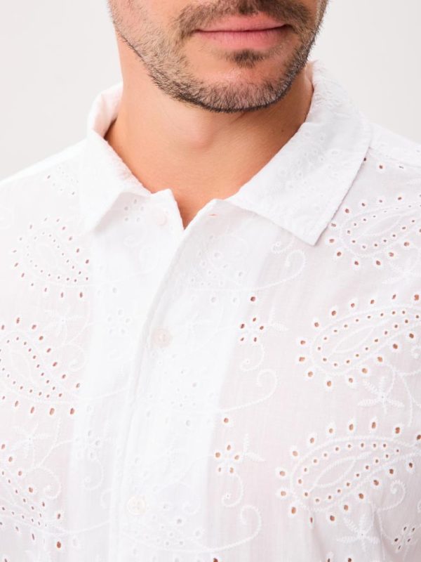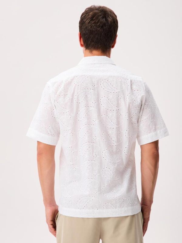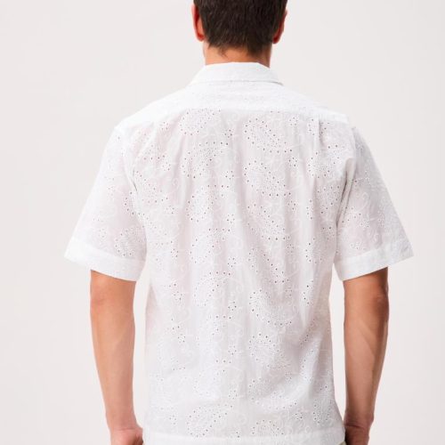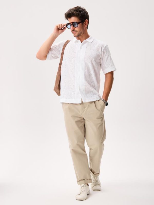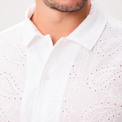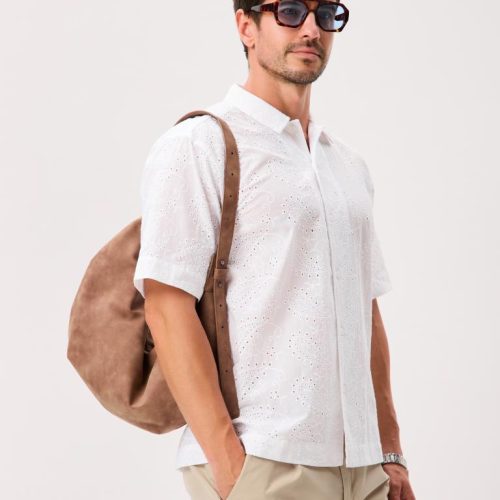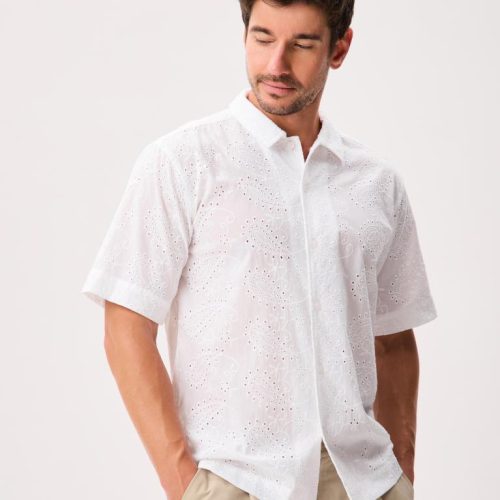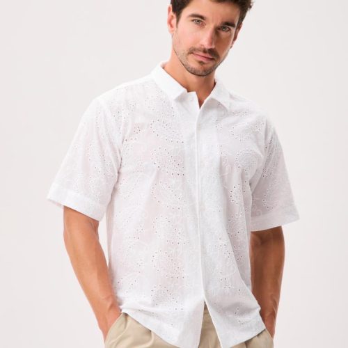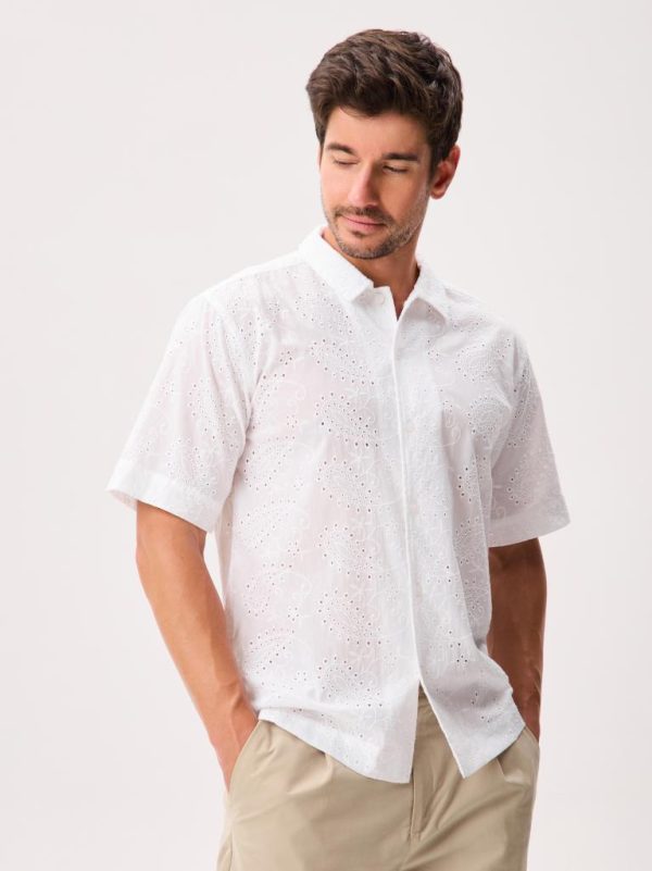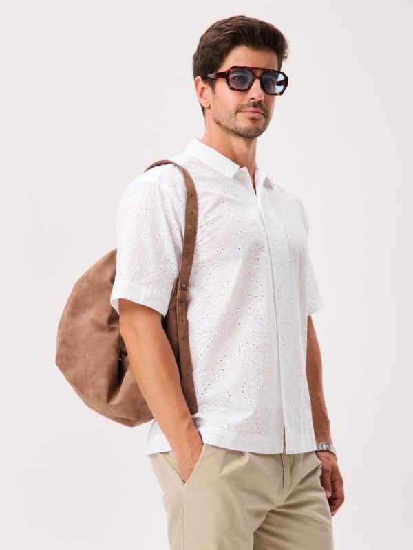 This short-sleeve button-up is cut from 100% cotton and crafted with unique all-over eyelet lace that’s airy, breathable, and comfortable in warm weather.
