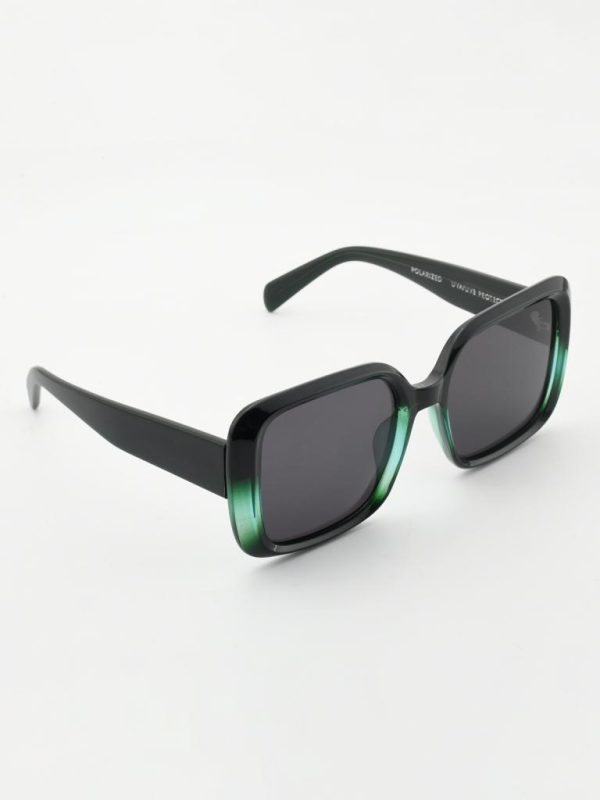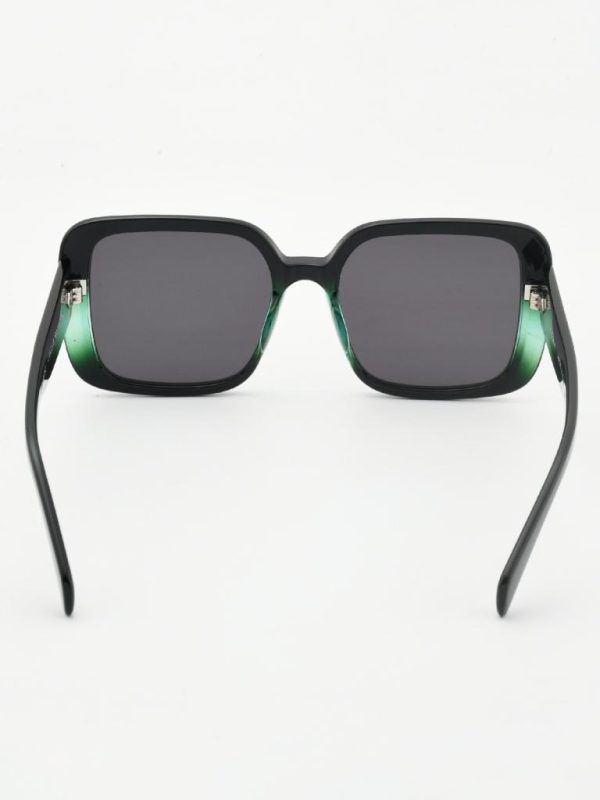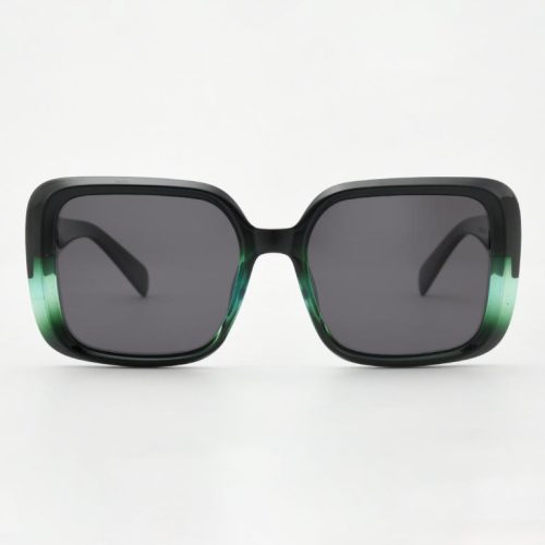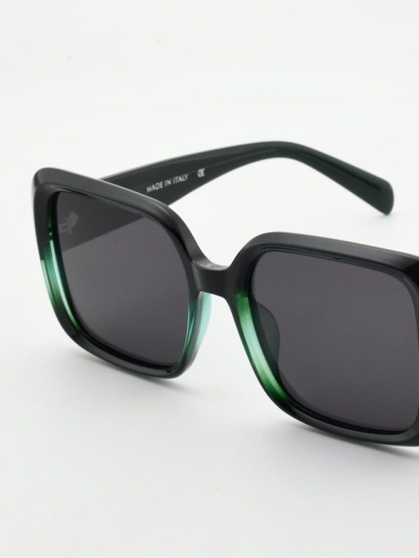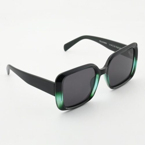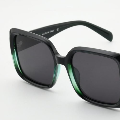 he statement square-butterfly silhouette—now in glossy black with subtle emerald-green crystal accents at the rims. Made in Italy from lightweight TR90 and fitted with 1.1 mm TAC polarized lenses for chic, glare-free comfort.