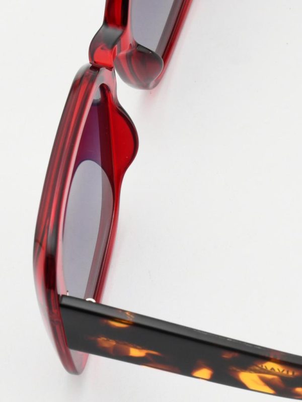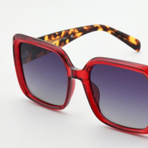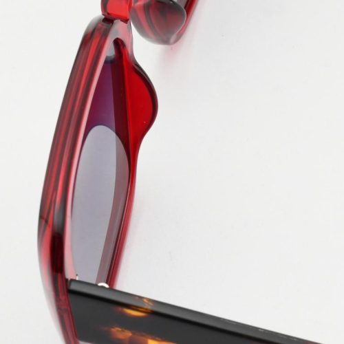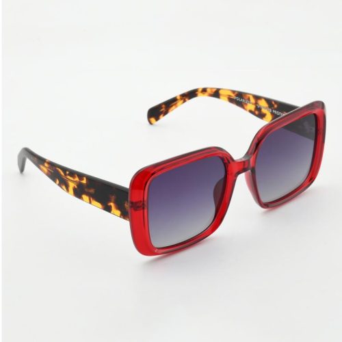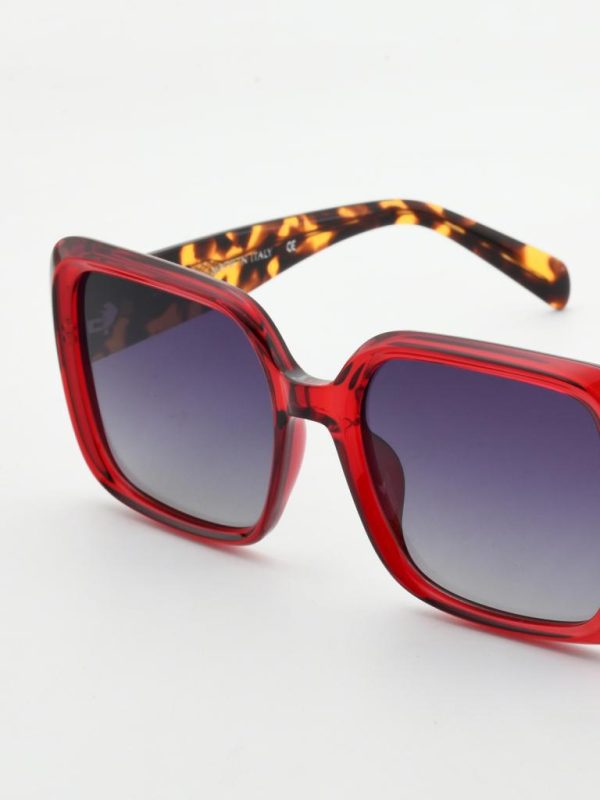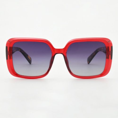 Statement-making and effortlessly chic. An oversized square-butterfly front in luminous red crystal pairs with glossy tortoise temples for a bold, feminine silhouette. Made in Italy with lightweight TR90 and 1.1 mm TAC polarized lenses for crisp, glare-free vision.