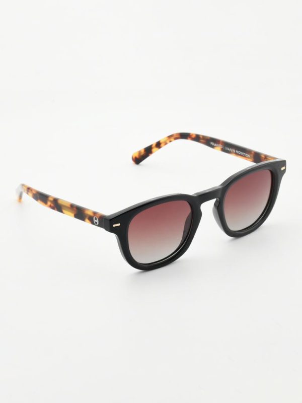 A modern take on the everyday square silhouette: a sleek black front paired with tortoise temples and brown-red gradient polarized lenses. Lightweight TR90 construction for all-day comfort and full UV protection.