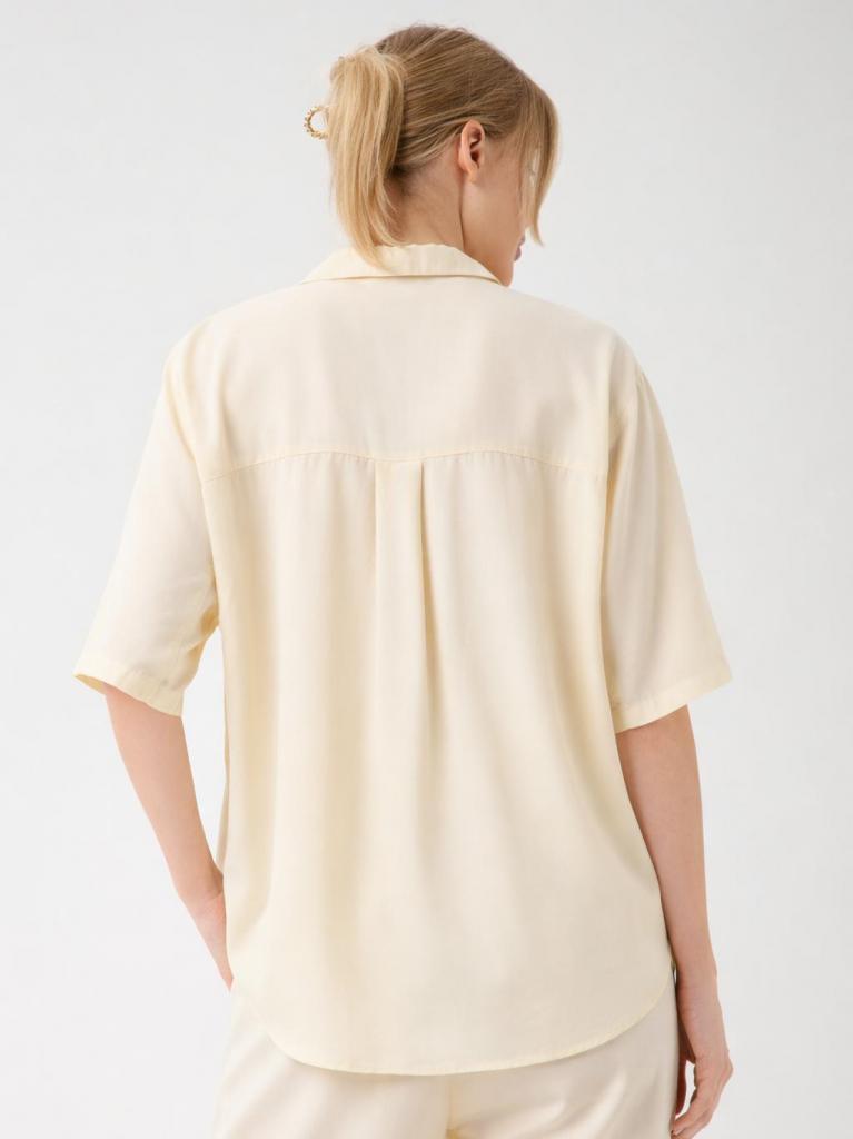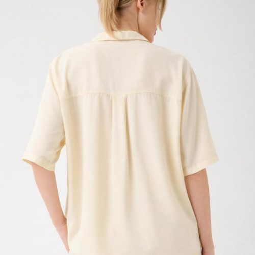Crafted from silky-soft Tencel™, this blouse offers a fluid drape and breathable comfort designed for warm-weather elegance. The relaxed silhouette falls effortlessly on the body, creating a smooth, refined look with minimal creasing — perfect for both resort and city styling.