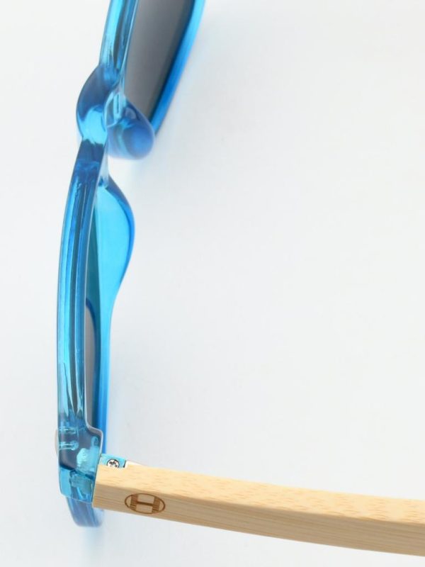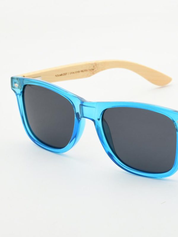 Everyday silhouette—now with a crystal-aqua PC front and natural bamboo temples. Lightweight comfort meets glare-free clarity from polarized smoke lenses, and it arrives gift-ready.