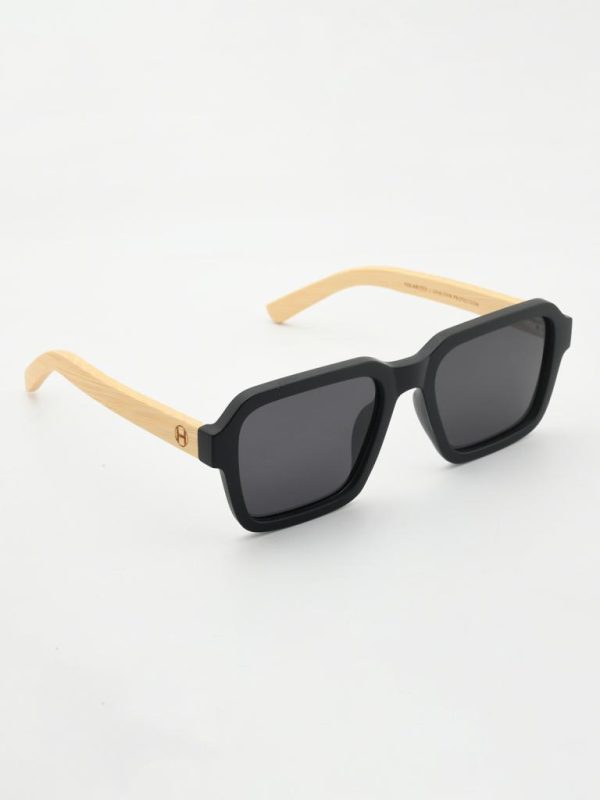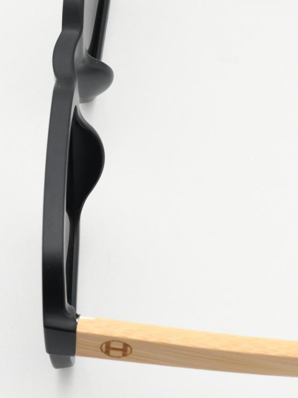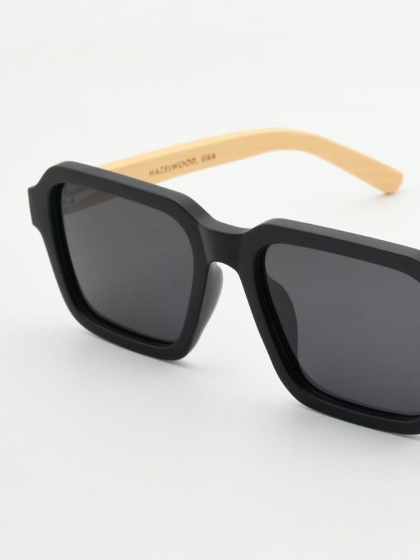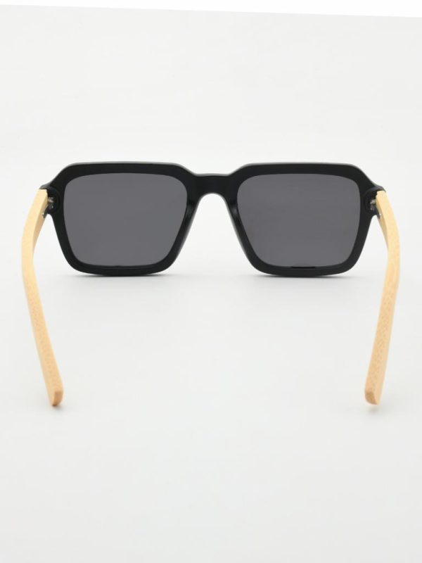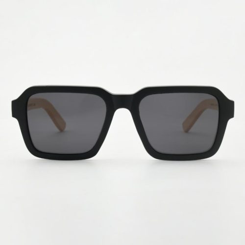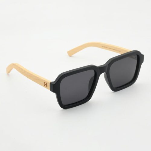 Graphic, squared lenses with soft corners meet a matte-black PC front and natural bamboo temples. 1.1 mm gray polarized lenses cut glare for crisp, true-color vision, while spring hinges keep the fit easy all day. Gift-ready with case and pouch.