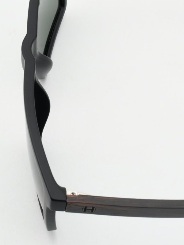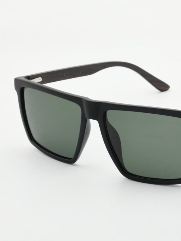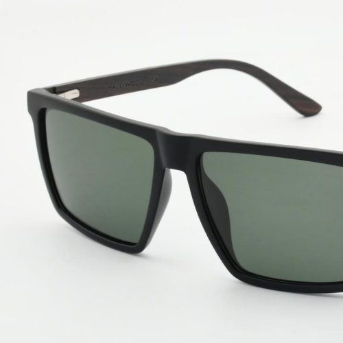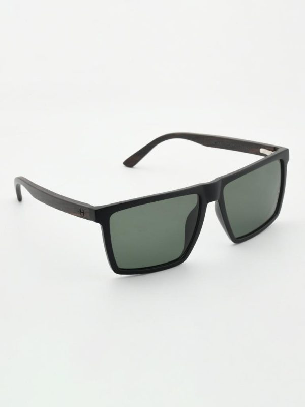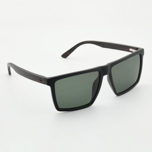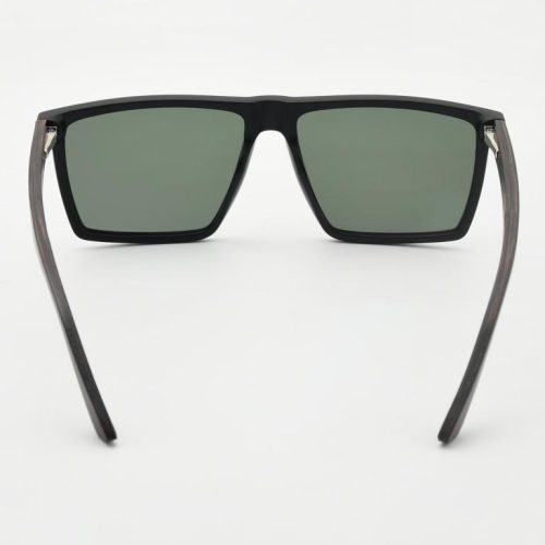 Sharp, low-profile rectangles with a sandy-matte black PC front and solid ebony-veneer temples. Polarized green lenses cut glare for crisp, relaxed vision, while spring hinges add easy all-day comfort. Cool, confident, and gift-ready.