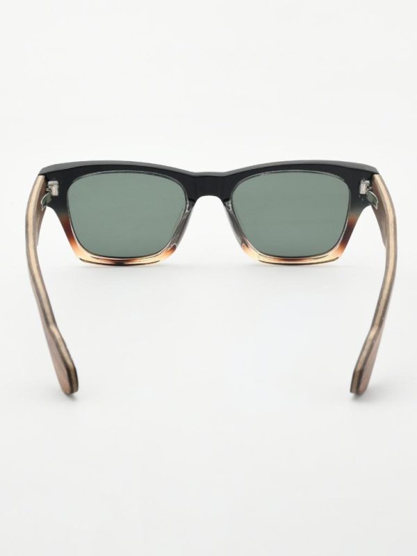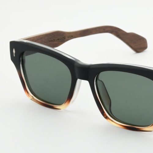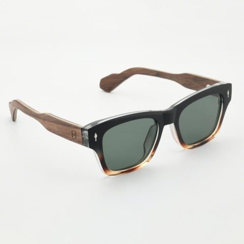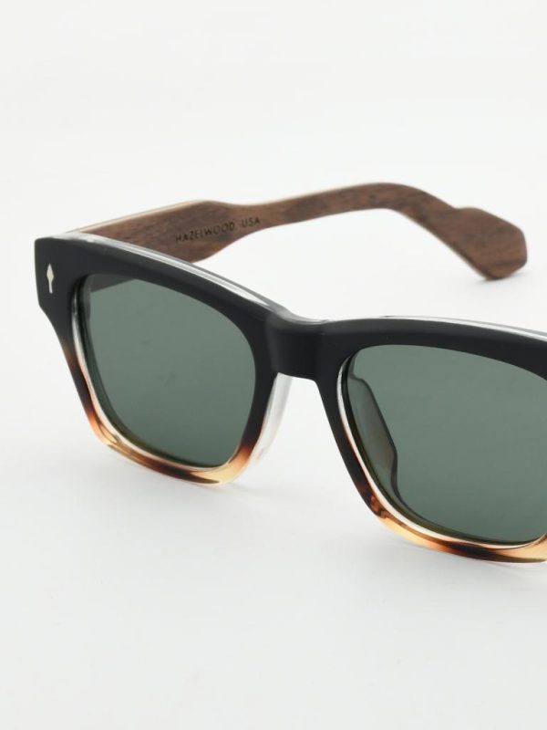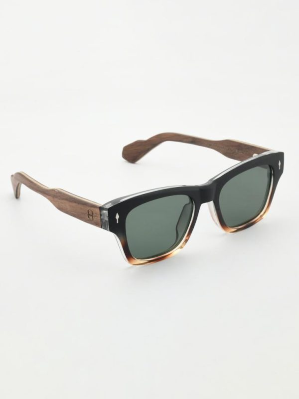 A confident, modern wayfarer: durable TR90 front in a sleek black-to-tortoise fade paired with natural walnut-veneer temples. G15 (neutral green) polarized lenses cut glare while keeping colors true. Lightweight, versatile, and gift-ready.
