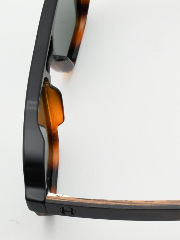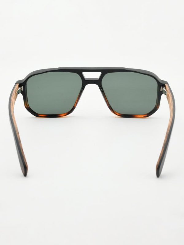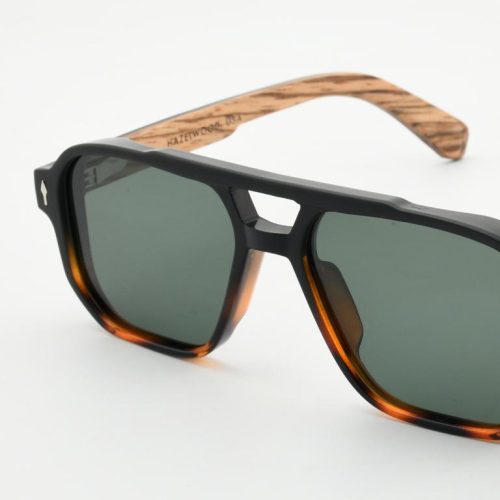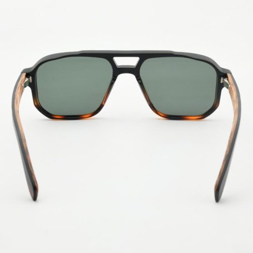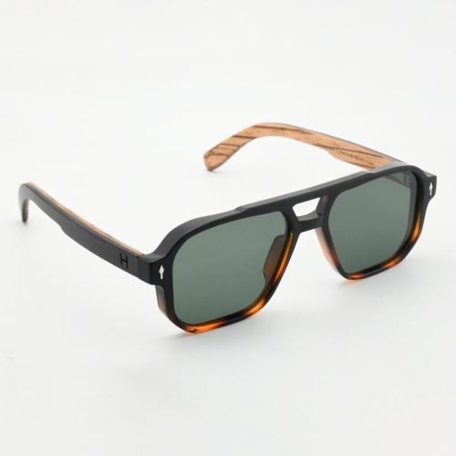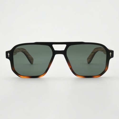 A bold pilot-inspired rectangle: TR90 front in a sleek black-to-tortoise fade paired with natural ebony temples. G15 (neutral green) 1.1 mm polarized lenses cut glare and keep colours true. Strong lines, everyday comfort—gift-ready.