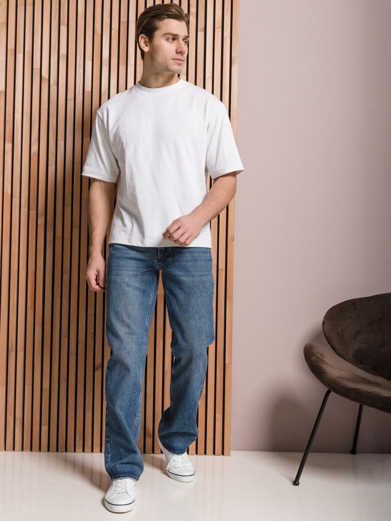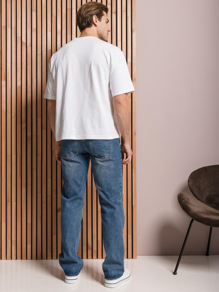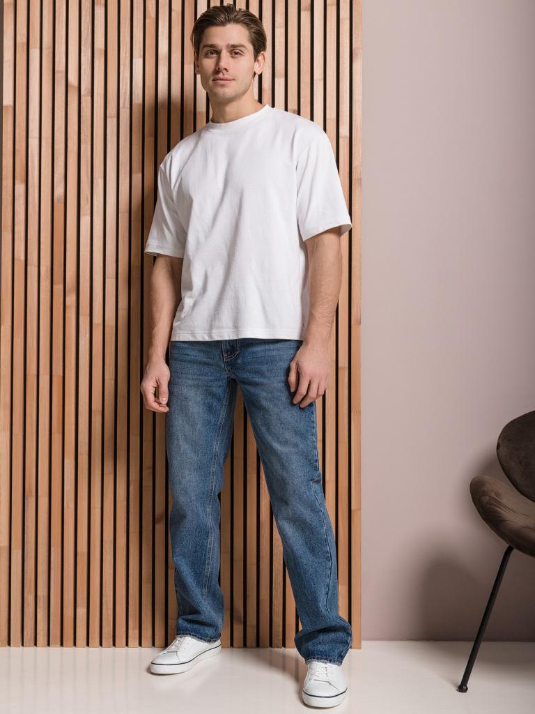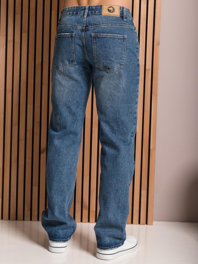 Classic straight men’s denim with mid rise waistband., made from 100% organic cotton. Straight fit, 5 pockets design and solid mid indigo colour.